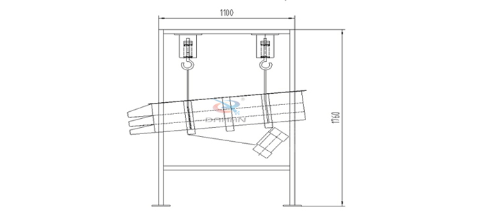 整個(gè)設(shè)備由篩箱、網(wǎng)架、篩網(wǎng)、2臺(tái)臥式振動(dòng)篩電機(jī)、減震彈簧、進(jìn)出料口、上蓋組成,除此之外還有高度可按需求定制的支架通過(guò)四個(gè)吊鉤把整個(gè)設(shè)備吊掛起來(lái)使其處于懸空狀態(tài)。